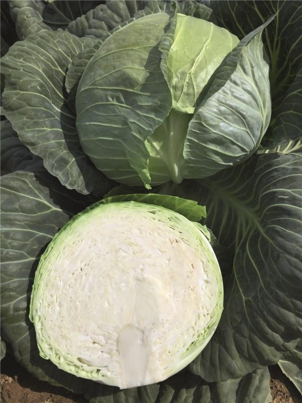 Кочан округлый, с исключительно плотной внутренней структурой, массой 3-5 кг. Гибрид длительно сохраняет выровненность и товарность в поле, не растрескиваясь, что дает гибкость в сроках уборки. Обладает высокими вкусовыми и засолочными (квасильными) качествами, а также хорошей лежкостью.