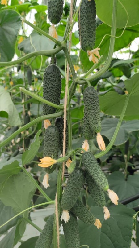 Растение формирует по 2-4 темно-зеленых, белошипых плода в каждом узле на протяжении всей вегетации, не сбрасывая завязь даже в стрессовых условиях. Зеленцы длиной 9-14 см, выровненные, с отличной транспортабельностью. Гибрид предназначен специально для первого и второго оборота в стеклянных и плёночных теплицах, а также для светокультуры и выращивания на гидропонике. Обладает высокой устойчивостью к комплексу болезней.